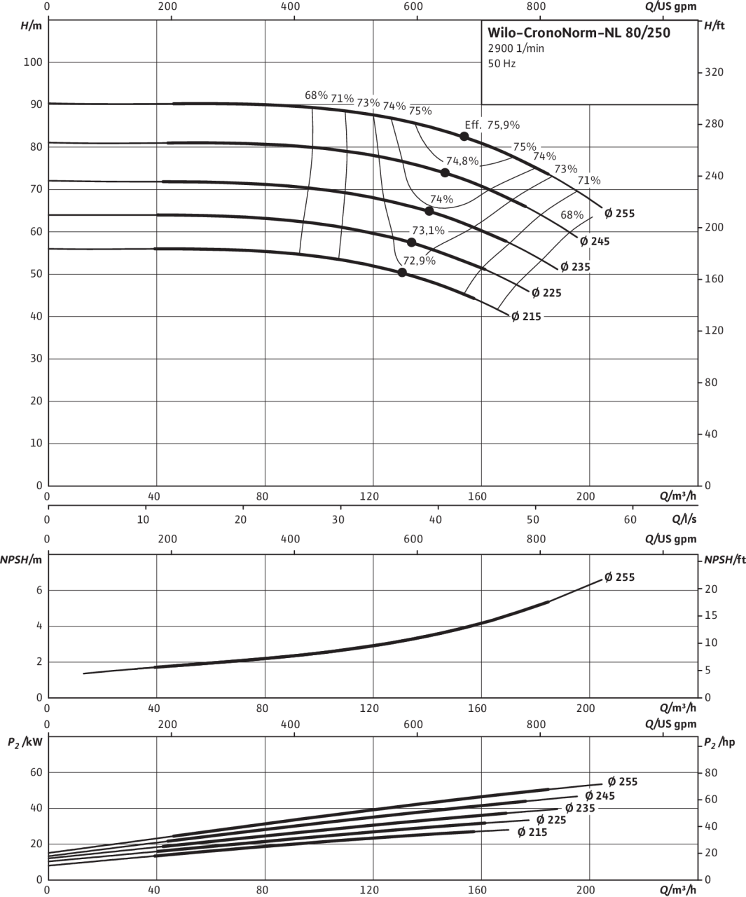 | Номинальный внутренний диаметр фланца (с напорной стороны) | DN 80 |