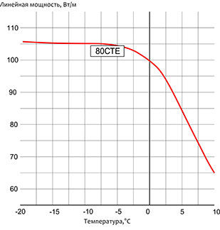 График зависимости линейной мощности кабеля нагревательного саморегулирующегося от температуры