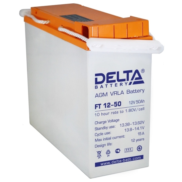 Необслуживаемые фронт-терминальные свинцово-кислотные аккумуляторы DELTA серии FT изготовлены по AGM технологии с абсорбированным электролитом. Благодаря данной технологии аккумуляторы не требуют долива дистиллята в течение всего срока службы.