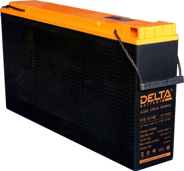 Герметизированные, необслуживаемые фронт-терминальные свинцово-кислотные аккумуляторы DELTA серии FTS изготовлены по AGM технологии с абсорбированным электролитом. Конструкция корпуса оптимизирована для установки в 19'' и 23'' телекоммуникационные шкафы и стойки.