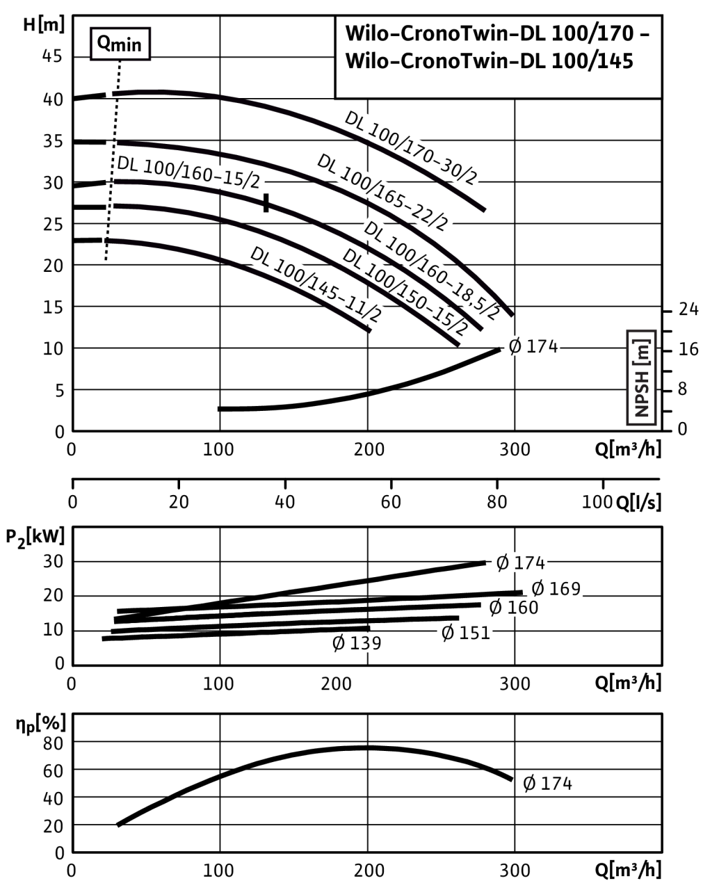 Насос с макс. диаметром рабочего колеса для определения MEIIL100/170-30/2