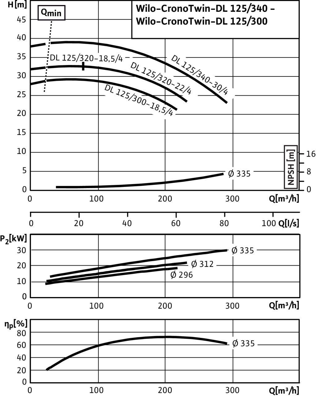 Насос с макс. диаметром рабочего колеса для определения MEIIL125/340-30/4