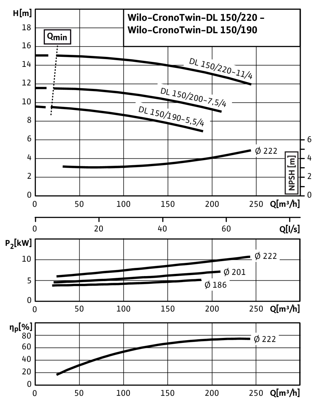 Насос с макс. диаметром рабочего колеса для определения MEIIL150/220-11/4