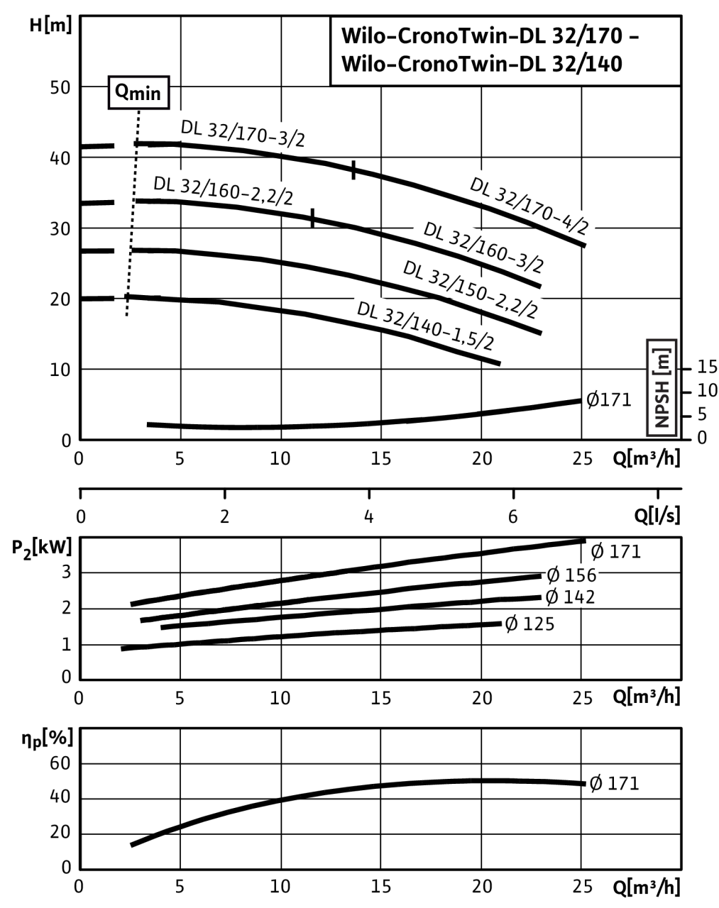Насос с макс. диаметром рабочего колеса для определения MEIIL32/170-4/2