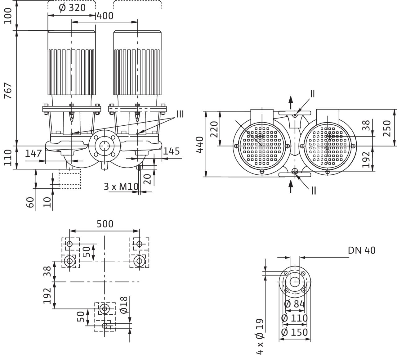 II отверстие для измерения давления R1/8; III удаление воздуха R1/8