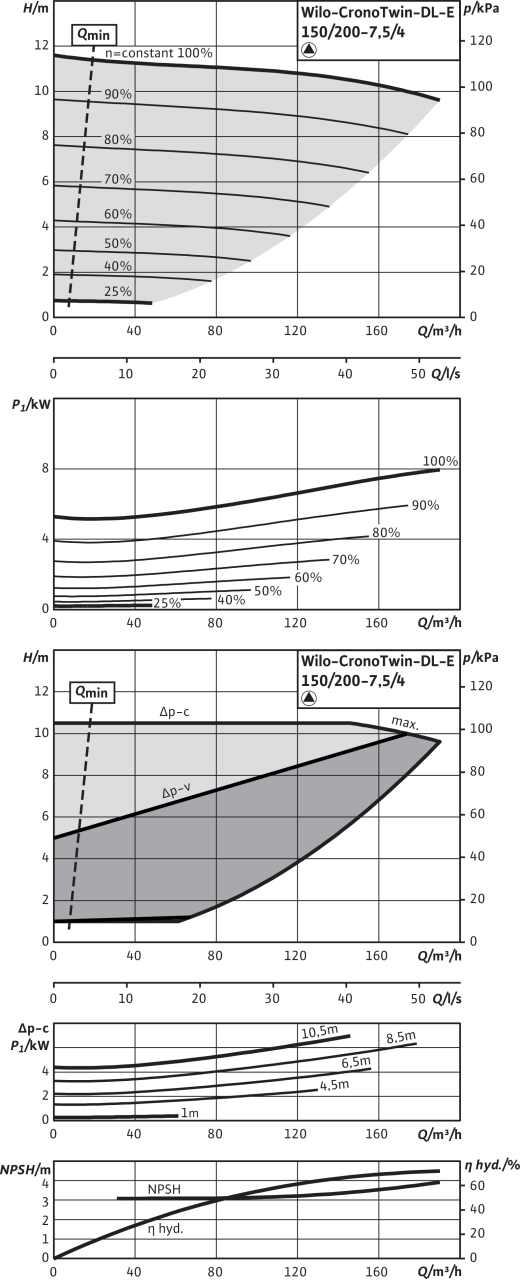 Технический паспорт Характеристики 4-полюсный, работа одного насоса Допустимая перекачиваемая среда (другие среды по запросу) Вода систем отопления (согласно VDI 2035) • Водогликолевая смесь (при доле гликоля 20-40 об. % и температуре перекачиваемой...