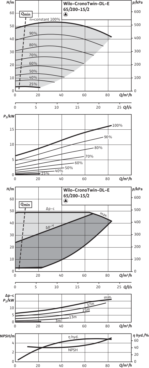 Технический паспорт Характеристики 2-полюсный, работа одного насоса Допустимая перекачиваемая среда (другие среды по запросу) Вода систем отопления (согласно VDI 2035) • Водогликолевая смесь (при доле гликоля 20-40 об. % и температуре перекачиваемой...