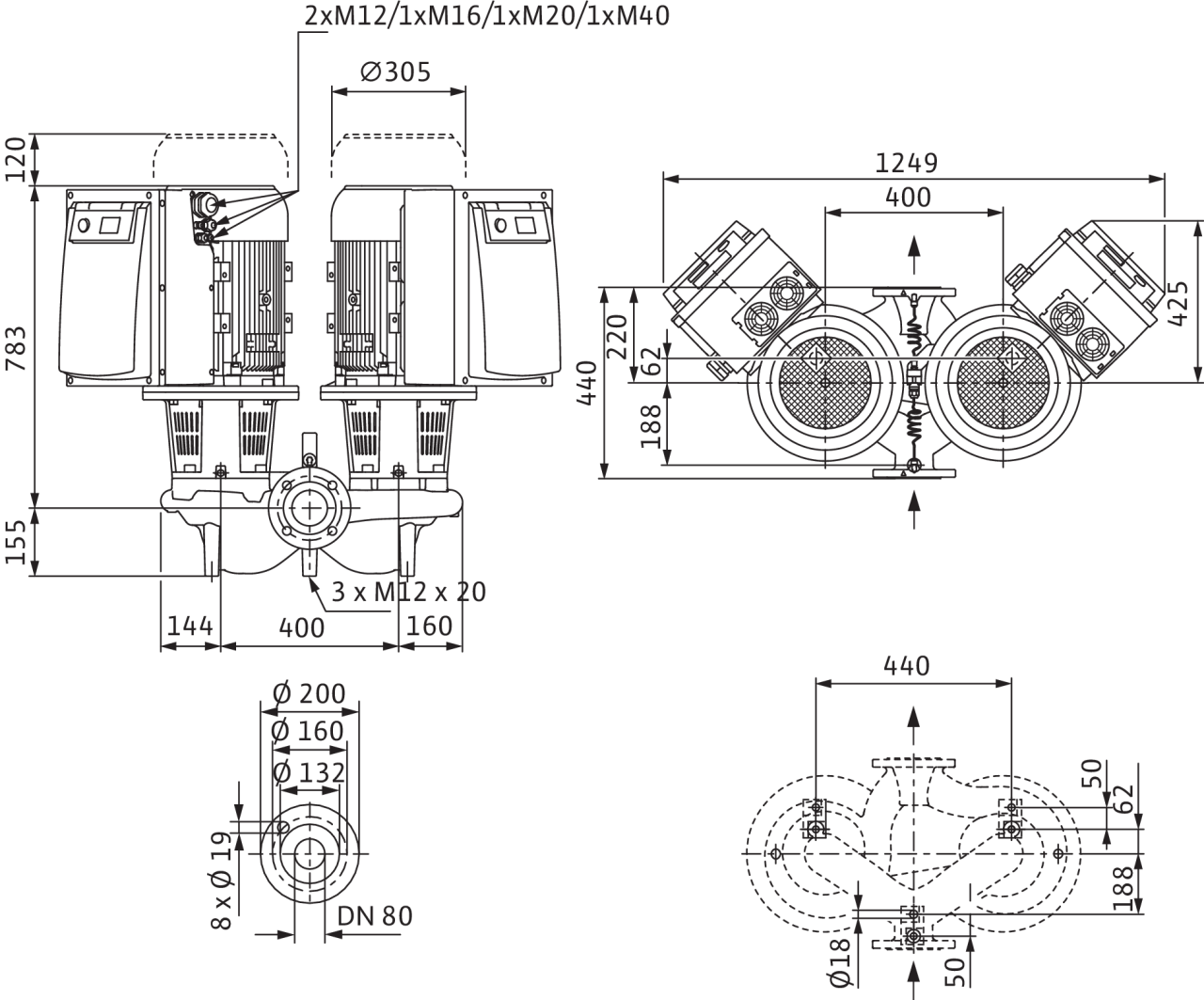 | Диапазон температур при макс. температуре окружающей среды +40 В°C | -20...+140 В°C (в зависимости от перекачиваемой среды) |