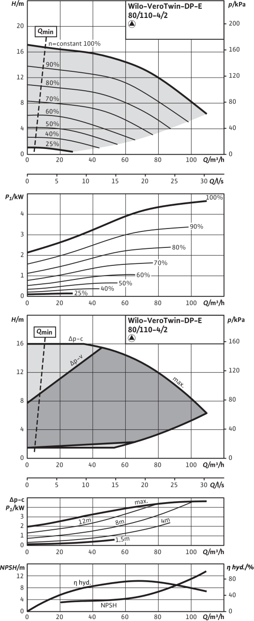 Технический паспорт Характеристики Работа одного насоса Допустимая перекачиваемая среда (другие среды по запросу) Вода систем отопления (согласно VDI 2035) • Водогликолевая смесь (при доле гликоля 20-40 об. % и температуре перекачиваемой...
