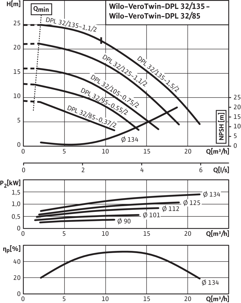 Насос с макс. диаметром рабочего колеса для определения MEIIPL32/135-1,5/2