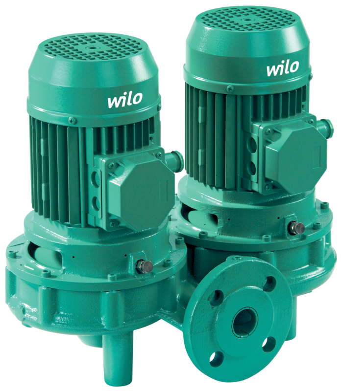 Линейный сдвоенный насос с двумя одноступенчатыми центробежными насосами с сухим ротором в общем корпусе с перекидным клапаном в напорном патрубке. Компактный насос линейного типа с непосредственно прифланцованным электродвигателем трехфазного тока и неразъемными валами или с промежуточными корпусами и муфтами жестко соединенных унифицированных электродвигателей (исполнение N).