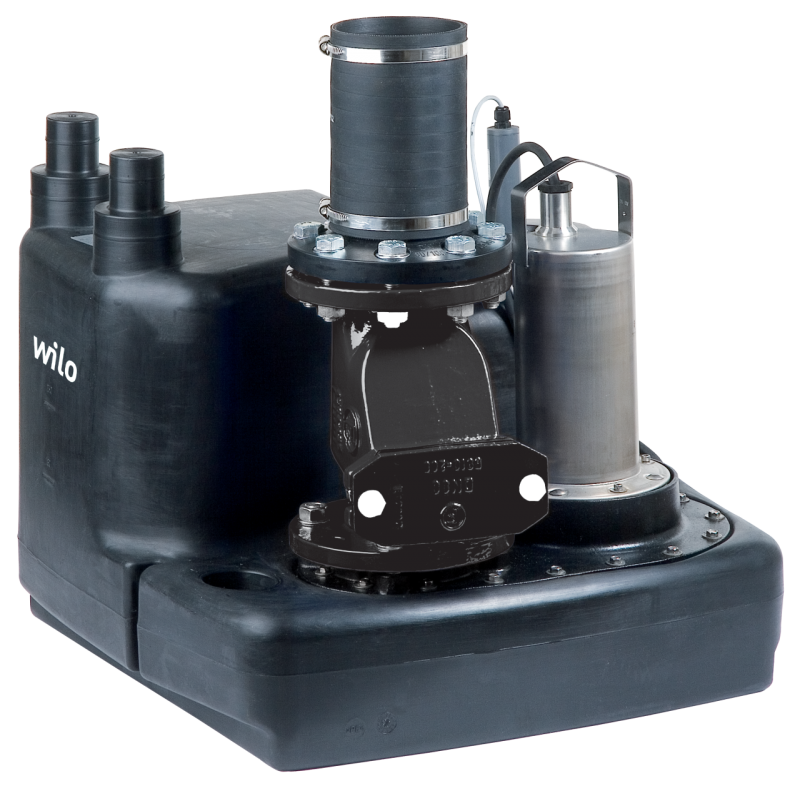 Готовая к подсоединению, полностью затапливаемая автоматическая напорная установка для отвода сточных вод в виде однонасосной установки. Электродвигатель насоса с сухим ротором в однофазном исполнении с корпусом из нержавеющей стали и датчиком контроля температуры обмотки электродвигателя. Газо- и водонепроницаемый сборный резервуар из пластмассы с наклонным дном для предотвращения образования отложений и гарантии надежной эксплуатации, подводящими патрубками на выбор и системой контроля уровня с поплавковым выключателем. Прибор управления с микропроцессорным управлением с