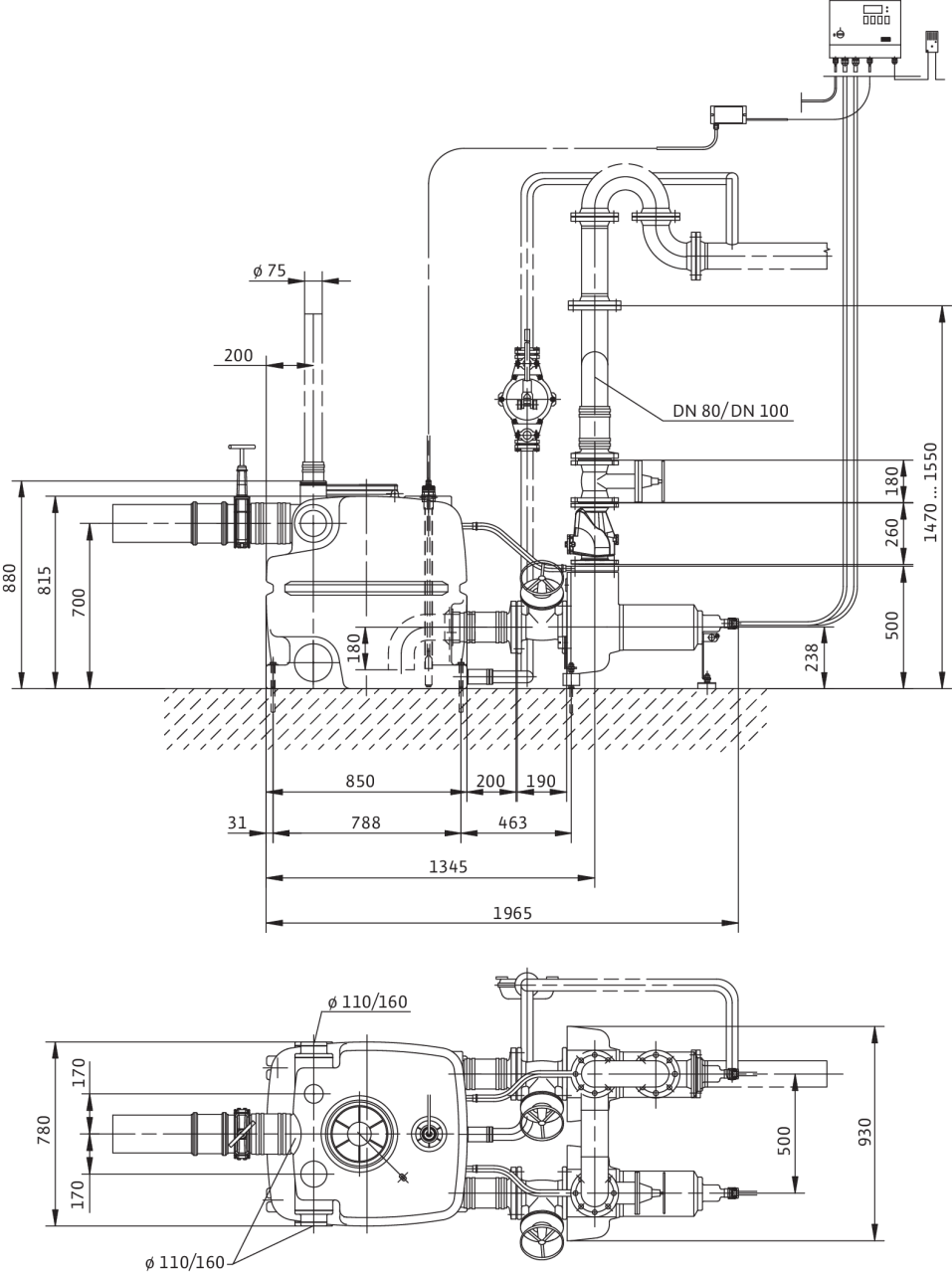 Внимание: Для установки необходимую арматуру, например, разветвленный трубопровод (тройник), задвижки и обратные клапаны, необходимо заказывать как принадлежности!