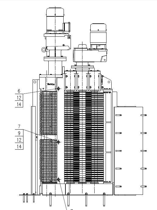 Механизм состоит из дискового экрана и дробилки. Дисковый экран представляет из себя несколько параллельных валов с дисками из высококачественной нержавеющей стали. Валы вращаются в одну сторону, осуществляя фильтрацию мелких включений потока через зазоры между дисками. Более крупные, неотфильтрованные включения перемещаются к дробилке.