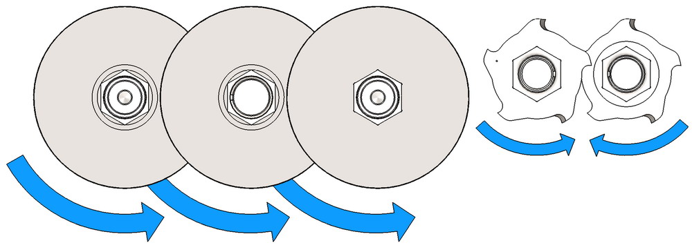 Механизм устанавливается под углом к потоку, что позволяет избежать жёстких ударов по нему крупными предметами. Механизм поставляется по желанию заказчика в левом и правом исполнениях. Механизм может быть изготовлен во множестве вариантов для различных габаритов потока.
