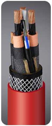 Конструктивно три основные токоведущие жилы скручены с расположенными в промежутках защитной жилой и оптоволоконным элементом.