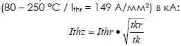 Максимально допустимая температура проводника при КЗ: 200 °C