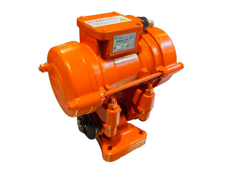 Вибратор представляет собой трехфазный асинхронный электродвигатель с короткозамкнутым ротором с установленными на концах вала ротора дебалансами. Дебалансы, вращаясь с валом ротора, создают вынуждающую силу. Круговые колебания, вызванные дебалансами, преобразуются в направленные благодаря шарнирному соединению возбудителя колебаний с вибромеханизмом.
