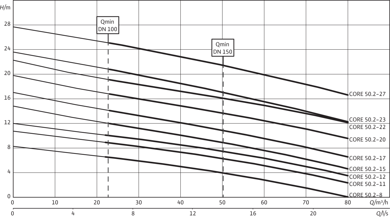 Указанные значения Qmin относятся к внутреннему диаметру стальных труб со стандартными стенками.