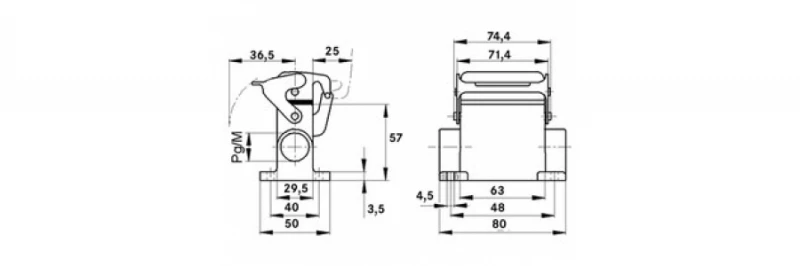 Корпус накладной Технические характеристики Материал Корпус: алюминиевое литьё, серый скоба: оцинкованная сталь уплотнение: NBR (бутадиеновая резина) Класс защиты IP 65 (закрытый ) Tемпературный диапазон -40°C + 100°C, кратковременно...