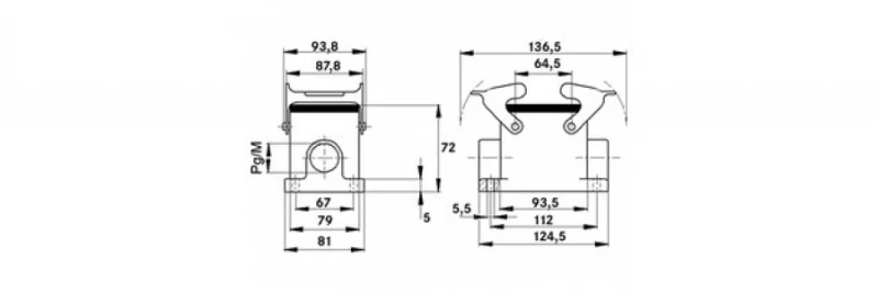 Корпус накладной Технические характеристики Материал Корпус: алюминиевый сплав с порошковым покрытием, серый Скоба: оцинкованная сталь Уплотнение: NBR (бутадиен . резина) Класс защиты IP 65 (закрытый ) Tемпературный диапазон -40°C...
