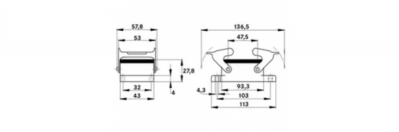 Материал Корпус: алюминиевый сплав с порошковым покрытием, серый Скоба: оцинкованная сталь Уплотнение: NBR (бутадиен . резина) Класс защиты IP 65 (закрытый )
