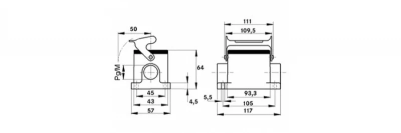 Корпус накладной Технические характеристики Материал Корпус: алюминиевый сплав с порошковым покрытием, серый Скоба: оцинкованная сталь Уплотнение: NBR (бутадиен . резина) Класс защиты IP 65 (закрытый ) Tемпературный диапазон -40°C...