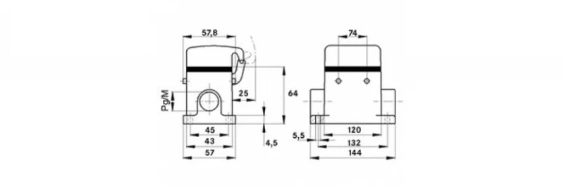 Корпус накладной Технические характеристики Материал Корпус: алюминиевый сплав с порошковым покрытием, серый Скоба: оцинкованная сталь Уплотнение: NBR (бутадиен . резина) Класс защиты IP 65 (закрытый ) Tемпературный диапазон -40°C...