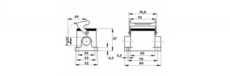 Корпус накладной Технические характеристики Материал Корпус: алюминиевый сплав с порошковым покрытием, серый Скоба: оцинкованная сталь Уплотнение: NBR (бутадиен . резина) Класс защиты IP 65 (закрытый ) Tемпературный диапазон -40°C...