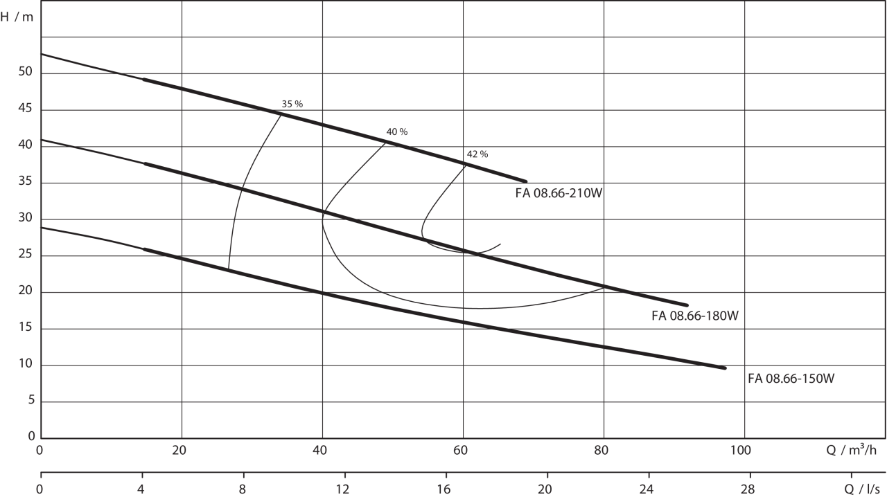 Технический паспорт Характеристики Wilo-EMU FA 08.66W - 50 Гц - 2900 об/мин Характеристики согласно ISO 9906, приложение A Указанные коэффициенты полезного действия соответствуют гидравлическому коэффициенту полезного действия. Агрегат Макс. напор...