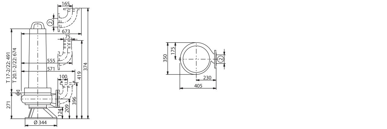 Полностью погружной дренажный насос для сточных вод для вертикальной установки в погруженном состоянии, для перекачивания сточных вод с фекалиями и твердыми материалами, а также для коммунальных и промышленных сточных вод. Агрегат полностью выполнен из серого чугуна, уплотнение со стороны насоса выполнено из карбида кремния (SiC), а уплотнение со стороны электродвигателя – из нитрильного каучука (NBR) (модель H) или карбида кремния (SiC) (модель G). Напорный патрубок с горизонтальным патрубком напорного слива и фланцевым соединением. Самоохлаждающийся электродвигатель (F-электродвигатель) или электродвигатель насоса с сухим ротором (T-электродвигатель) в исполнении для трехфазного тока для прямого или звездообразного соединения треугольником с защитой электродвигателя от перегрева (T-электродвигатель, в зависимости от типа) и уплотнительной камерой. Уплотнительную камеру также можно контролировать с помощью внешнего электрода для камеры уплотнений. Агрегаты с электродвигателем T 20.1 дополнительно оснащены камерой утечек, которая контролируется поплавковым выключателем. Водостойкий (только для T-электродвигателя) соединительный кабель длиной 10 м со свободным концом. Все агрегаты с электродвигателем насоса с сухим ротором серийно обладают сертификатом взрывозащиты.