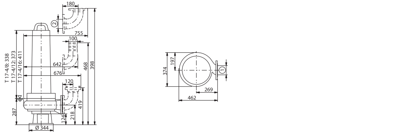 Полностью погружной дренажный насос для сточных вод для вертикальной установки в погруженном состоянии, для перекачивания сточных вод с фекалиями и твердыми материалами, а также для коммунальных и промышленных сточных вод. Агрегат полностью выполнен из серого чугуна, уплотнение со стороны насоса выполнено из карбида кремния (SiC), а уплотнение со стороны электродвигателя – из нитрильного каучука (NBR) (модель H) или карбида кремния (SiC) (модель G). Напорный патрубок с горизонтальным патрубком напорного слива и фланцевым соединением. Самоохлаждающийся электродвигатель (F-электродвигатель) или электродвигатель насоса с сухим ротором (T-электродвигатель) в исполнении для трехфазного тока для прямого или звездообразного соединения треугольником с защитой электродвигателя от перегрева (T-электродвигатель, в зависимости от типа) и уплотнительной камерой. Уплотнительную камеру также можно контролировать с помощью внешнего электрода для камеры уплотнений. Агрегаты с электродвигателем T 20.1 дополнительно оснащены камерой утечек, которая контролируется поплавковым выключателем. Водостойкий (только для T-электродвигателя) соединительный кабель длиной 10 м со свободным концом. Все агрегаты с электродвигателем насоса с сухим ротором серийно обладают сертификатом взрывозащиты.