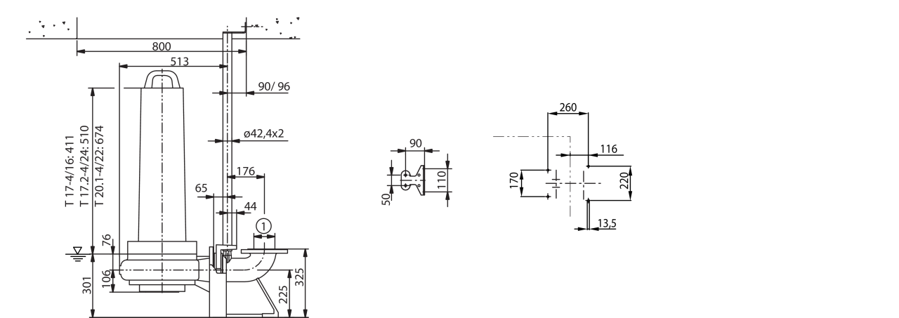 Полностью погружной дренажный насос для сточных вод для вертикальной установки в погруженном состоянии, для перекачивания сточных вод с фекалиями и твердыми материалами, а также для коммунальных и промышленных сточных вод. Агрегат полностью выполнен из серого чугуна, уплотнение со стороны насоса выполнено из карбида кремния (SiC), а уплотнение со стороны электродвигателя – из нитрильного каучука (NBR) (модель H) или карбида кремния (SiC) (модель G). Напорный патрубок с горизонтальным патрубком напорного слива и фланцевым соединением. Самоохлаждающийся электродвигатель (F-электродвигатель) или электродвигатель насоса с сухим ротором (T-электродвигатель) в исполнении для трехфазного тока для прямого или звездообразного соединения треугольником с защитой электродвигателя от перегрева (T-электродвигатель, в зависимости от типа) и уплотнительной камерой. Уплотнительную камеру также можно контролировать с помощью внешнего электрода для камеры уплотнений. Агрегаты с электродвигателем T 20.1 дополнительно оснащены камерой утечек, которая контролируется поплавковым выключателем. Водостойкий (только для T-электродвигателя) соединительный кабель длиной 10 м со свободным концом. Все агрегаты с электродвигателем насоса с сухим ротором серийно обладают сертификатом взрывозащиты.
