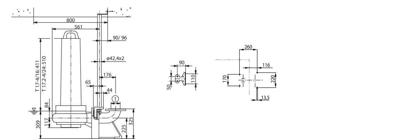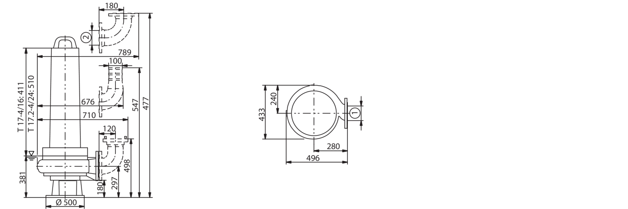 Полностью погружной дренажный насос для сточных вод для вертикальной установки в погруженном состоянии, для перекачивания сточных вод с фекалиями и твердыми материалами, а также для коммунальных и промышленных сточных вод. Агрегат полностью выполнен из серого чугуна, уплотнение со стороны насоса выполнено из карбида кремния (SiC), а уплотнение со стороны электродвигателя – из нитрильного каучука (NBR) (модель H) или карбида кремния (SiC) (модель G). Напорный патрубок с горизонтальным патрубком напорного слива и фланцевым соединением. Самоохлаждающийся электродвигатель (F-электродвигатель) или электродвигатель насоса с сухим ротором (T-электродвигатель) в исполнении для трехфазного тока для прямого или звездообразного соединения треугольником с защитой электродвигателя от перегрева (T-электродвигатель, в зависимости от типа) и уплотнительной камерой. Уплотнительную камеру также можно контролировать с помощью внешнего электрода для камеры уплотнений. Агрегаты с электродвигателем T 20.1 дополнительно оснащены камерой утечек, которая контролируется поплавковым выключателем. Водостойкий (только для T-электродвигателя) соединительный кабель длиной 10 м со свободным концом. Все агрегаты с электродвигателем насоса с сухим ротором серийно обладают сертификатом взрывозащиты.