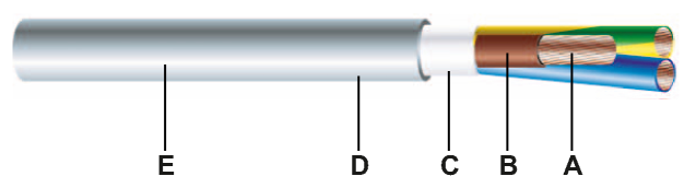 Примечание: Три, четыре, пять и другие многожильные кабели могут быть произведены с жилой желтозеленый. Электропроводности для одножильных кабелей вычислены на 3 близких кабеля, для двухжильных кабелей с двумя проводниками под напряжением и для трехжильных кабелей с тремя проводниками под напряжением. Внешние диаметры приблизительные и могут отличаться макс. на +/-3%.