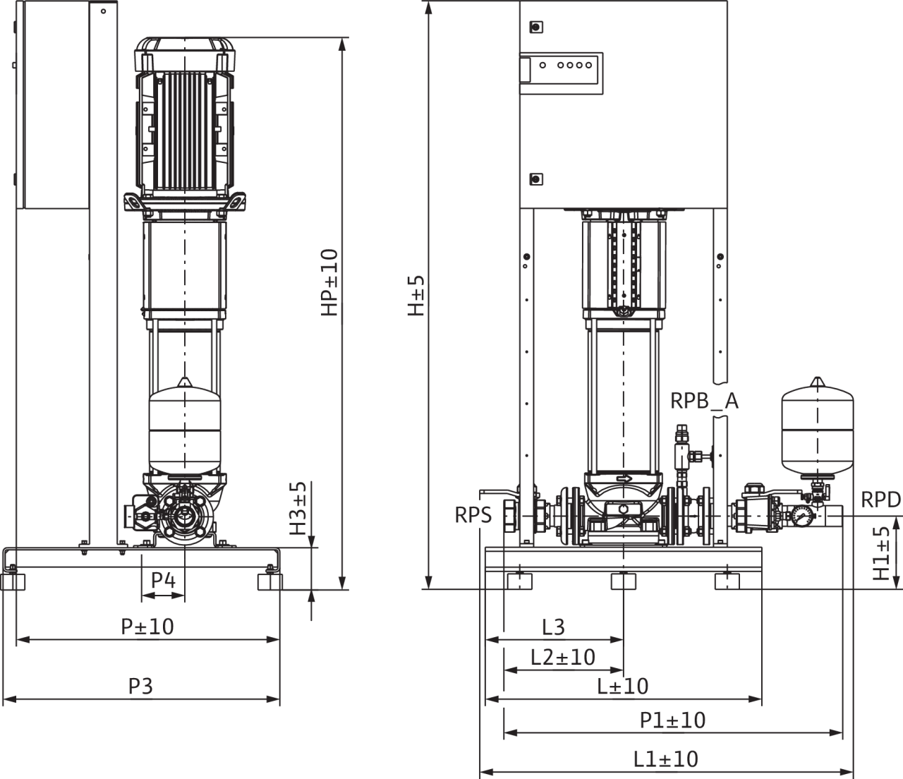 Мембранный напорный бак (объем 8 л), интегрированный обратный клапан, запорные арматуры с всасывающей и напорной стороны (в открытом состоянии опломбированы), манометр, манометрический переключатель для автоматического управления установкой.