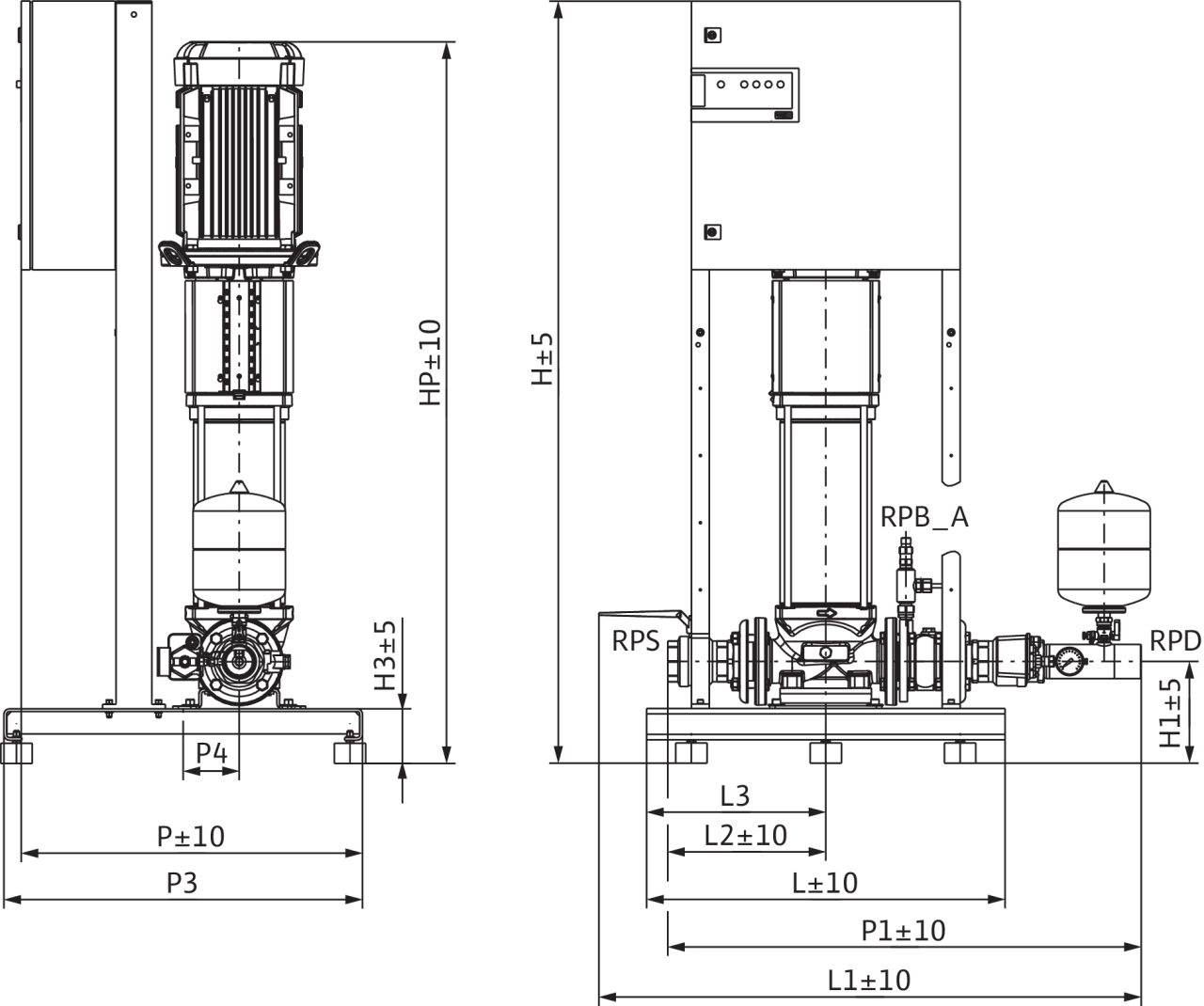 | Номинальные внутренние диаметры трубы на стороне всасывания RPS | Rp 2ВЅ |