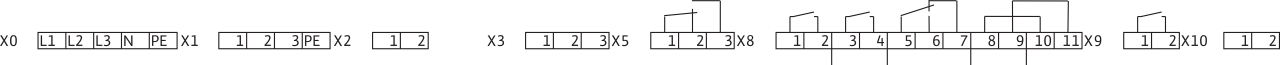 X8: беспотенциальный контакт; 1, 2 – готовность к работе; 3, 4 – вкл. насоса; 5, 6, 7 – обобщенная сигнализация неисправности; 8, 9 – контроль аварийного перелива (поплавковый выключатель); 10, 11 – контроль аварийного перелива (сигнализация)
