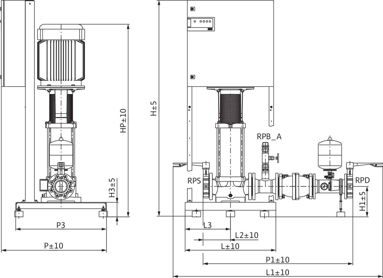DN 100Номинальные внутренние диаметры трубы на стороне всасывания RPS