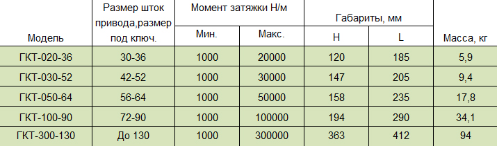 Гайковёрты (тензорные домкраты) моделей ГКТ-020-36,ГКТ-030-52,ГКТ-050-64,ГКТ-100-90 и ГКТ-300-130- базовые модели гайковёртов.