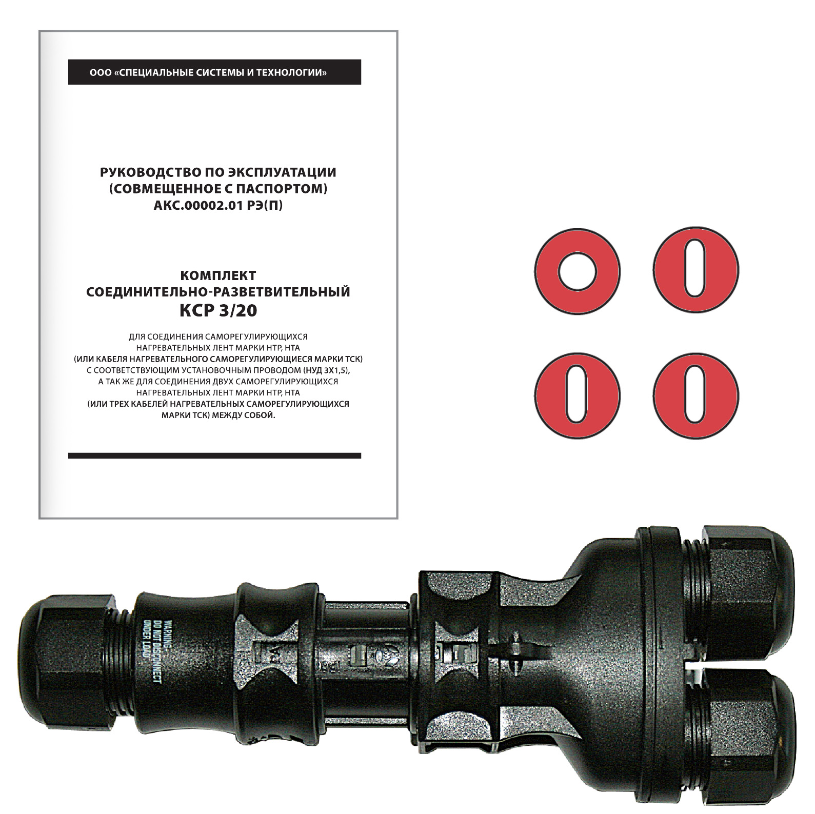 Комплект КС 3/20 предназначен для соединения саморегулирующегося нагревательного кабеля с установочным проводом, а так же для соединения двух саморегулирующихся нагревательных кабелей между собой.