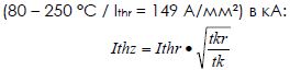 Максимально допустимая температура проводника при КЗ: 250 °C