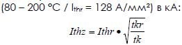 Максимально допустимая температура проводника при КЗ: 200 °C