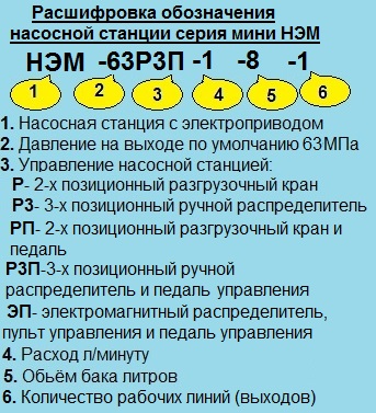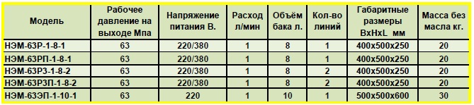 Управление насосной станцией серии НЭМ осуществляется: электромагнитным распределителем ( с пультом управления и педалью ножного управления),ручным 3-х гидравлическим распределителем или 2-х позиционным разгрузочным краном .На станции с ручным распределителем дополнительно устанавливается педаль ножного управления. Номинальное давление на выходе 63МПа. Станции комплектуются виброустойчивым манометром, предохранительным клапаном для защиты насосной станции от превышения максимально допустимого давления, фильтром для очистки рабочей жидкости на сливе гидросистемы,маслоуказателем для контроля нижнего предельного уровня рабочей жидкости в баке.