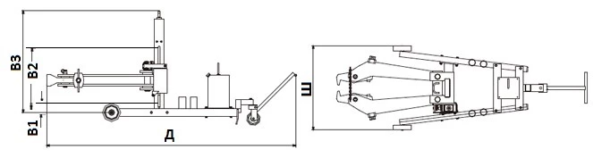 Рама на колесах с установленным на ней съемником и насосной станцией,легко перемещается к месту работ, а подъемный винтовой
