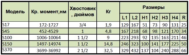 Основные характеристики гайковертов серии S