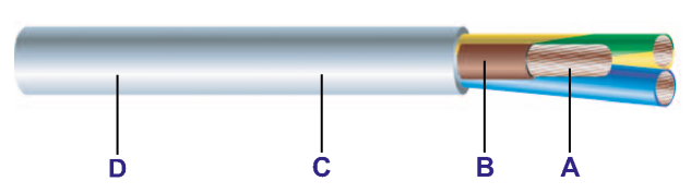 B Особенный 90°C термопласт соединяет изоляцию. C Особенный 90°C термопласт соединяет оболочку.
