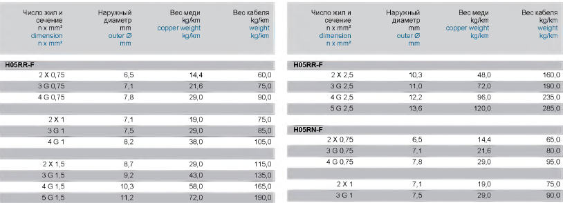 H05RN-F: гармонизированный, гибкий кабель с резиновой изоляцией используется для присоединения электроприборов для средних механических нагрузок, в сухих, влажных и сырых помещениях,а также под открытым небом