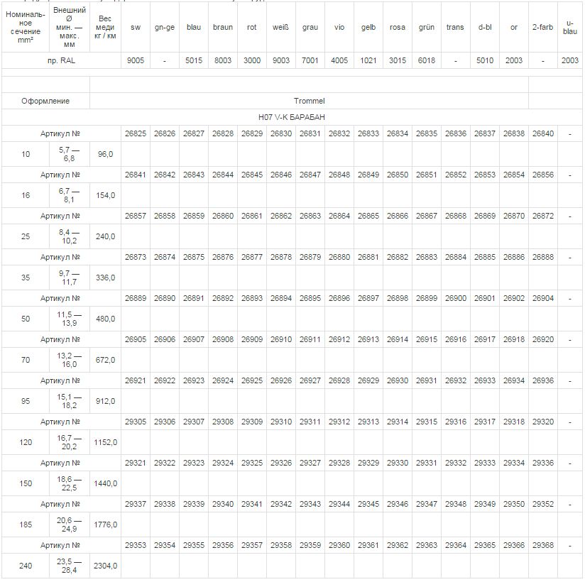 Характеристики — H07 V-K БАРАБАН 1X10мм² ЧЁРН