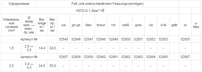 Характеристики — H07Z-K 1,5мм² ЧЁРНЫЙ